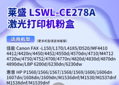 莱盛CE278A硒鼓适用惠普HP P1560 P1566 P1606 P1606dn M1536dnf佳能LBP6200d ICD520 ICMF4410 4412墨盒粉盒
